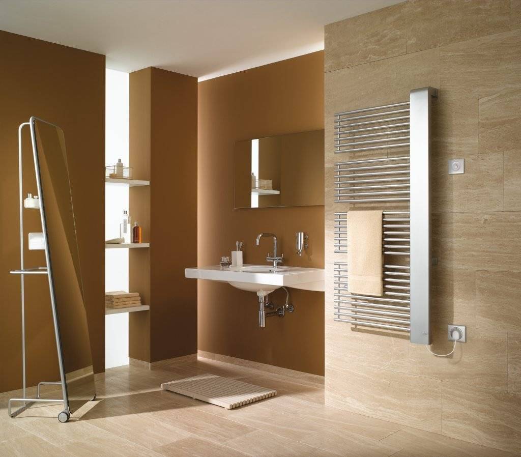 Согласно ГОСТ Р 51617-2000, в отопительный период в ванной комнате должна быть температура +25°C. Если помещение небольшое, то с его обогревом справится полотенцесушитель с электрическим водонагревателем. При его выборе надо учитывать, чтобы мощность соответствовала площади отапливаемой комнаты.