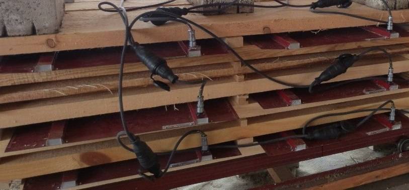 - Сооружается штабель из досок так, как было описано в предыдущем разделе. Между тремя слоями досок кладется несколько инфракрасных кассет. Над завершающим теплым слоем необходим один слой из досок. Это расположение считается оптимальным для равномерной просушки и качественного нагрева дерева.