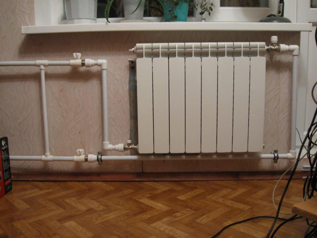 От котла прокладываются трубы в помещения, которые необходимо отапливать. В городских условиях длина труб может достигать несколько километров, и они прокладываются под землей, чтобы не мешать жителям. В комнатах трубы подключаются к радиаторам (батареям), которые и нагревают окружение. Раньше радиаторы изготавливали из чугуна, но сейчас делается акцент на алюминий и латунь из-за более высокой надежности: чугунные батареи быстро ржавели и приходили в негодность.