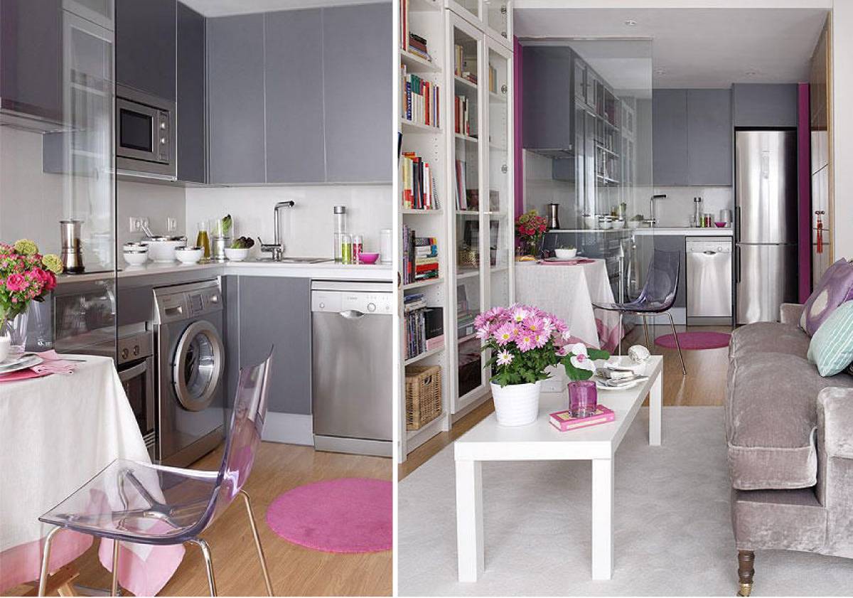 Стену посреди комнаты не проложишь: места и так немного, поэтому проводят зонирование: