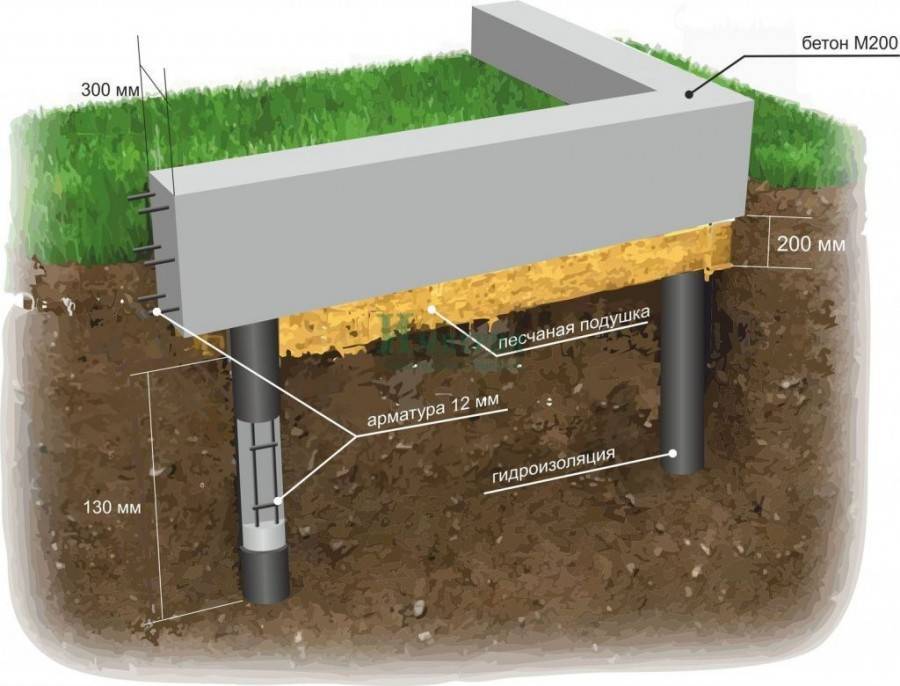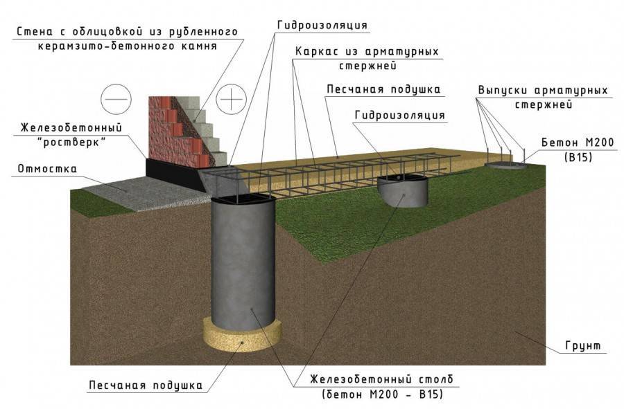 Конструкция фундамента, имеющего высокий ростверк, обладает существенными преимуществами перед заглубленным внутрь фундаментом с низким ростверком.