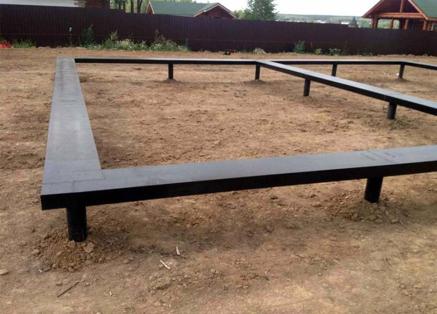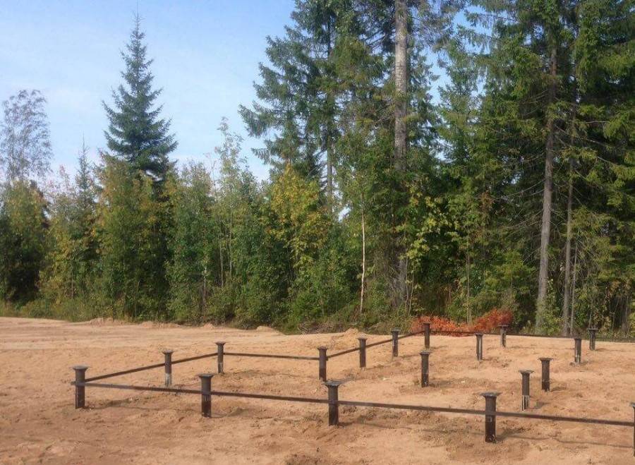 Верхние части опор соединяются между собой общим бетонным ростверком. Он служит для придания жёсткости свайной конструкции и одновременно – для опоры несущих стен дома. Перед началом работ нужно произвести планировку – выравнивание участка, и удаление верхнего органического слоя почвы.