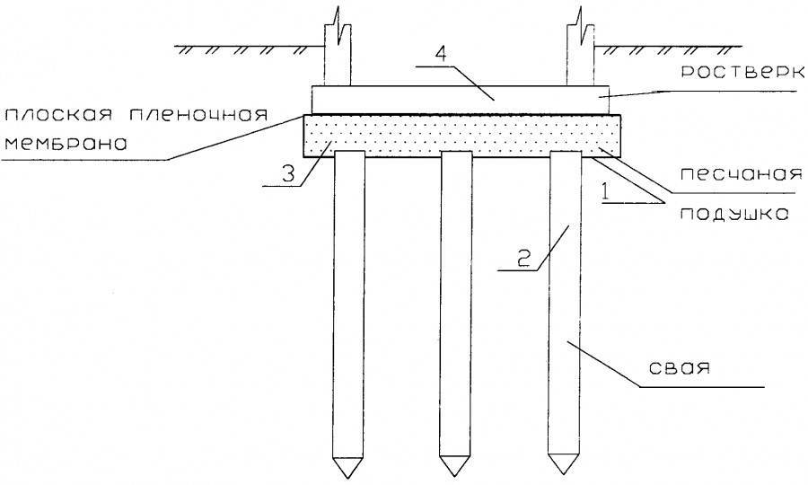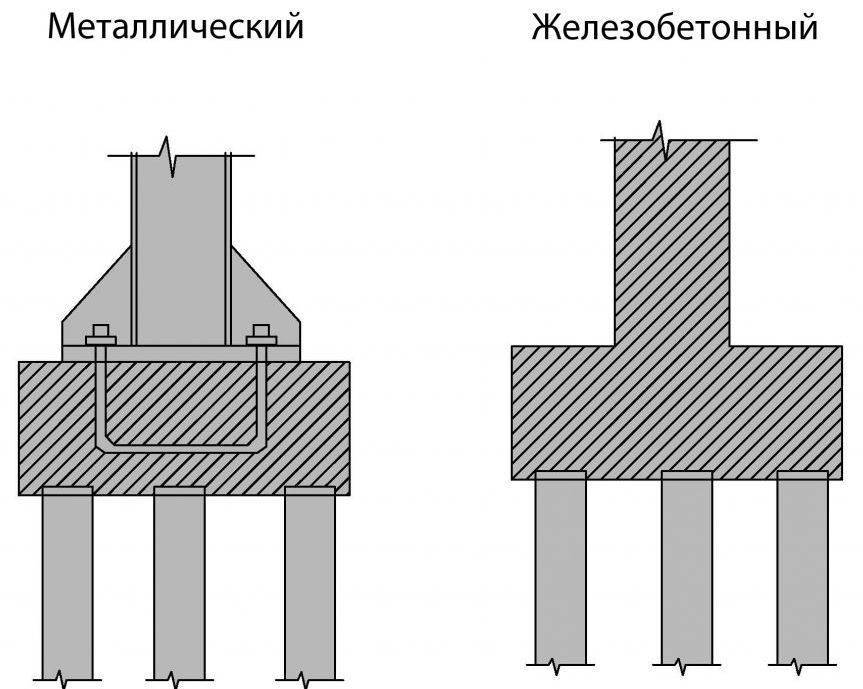 У высокого ростверка подошва возвышается над поверхностью земли, а низкий ростверк выполняется заглубленным в грунт.