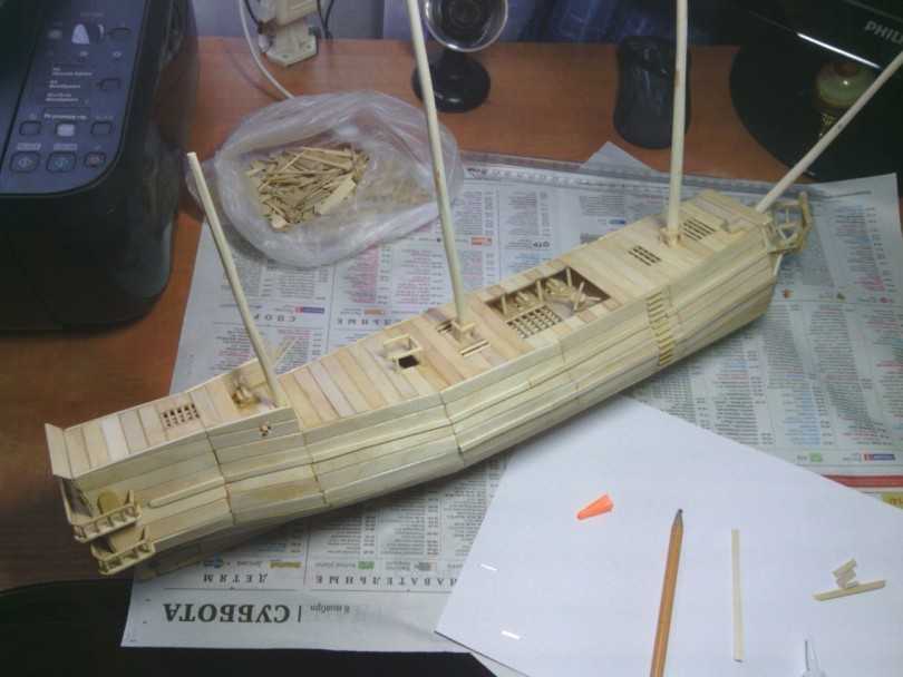 - Сделайте лестницу из палочек и приклейте её.