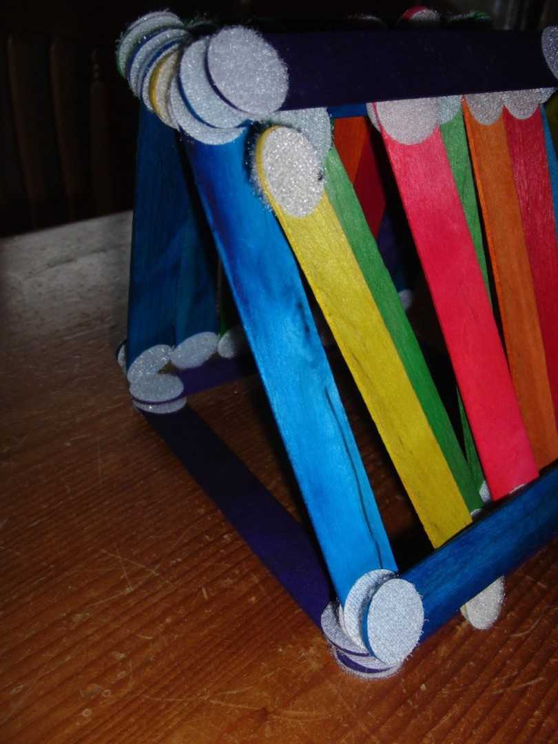 Палочки можно разукрасить – тогда поделка станет яркой и выразительной.