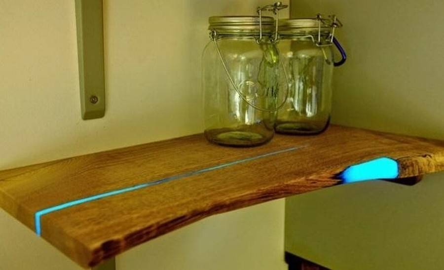 Вторая составляющая необычной полки, это смеси флуоресцентных, люминесцентных пигментов и полиэфирных смол (можно приобрести на Алиэкспресс):