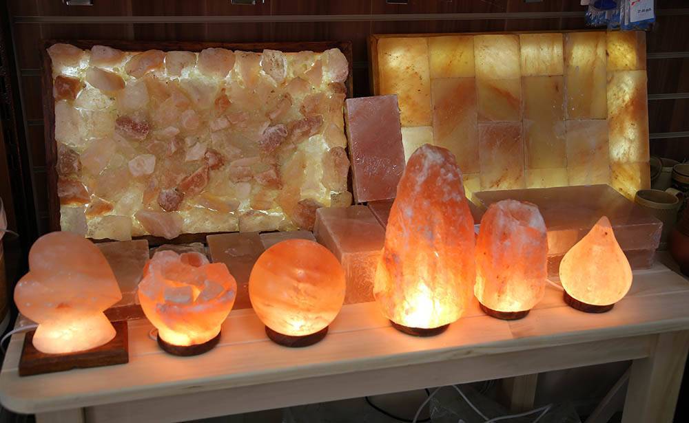 Соляные осветительные приборы изготавливаются промышленным способом из гималайской соли, добываемой вручную. Основные элементы солевого светильника это: