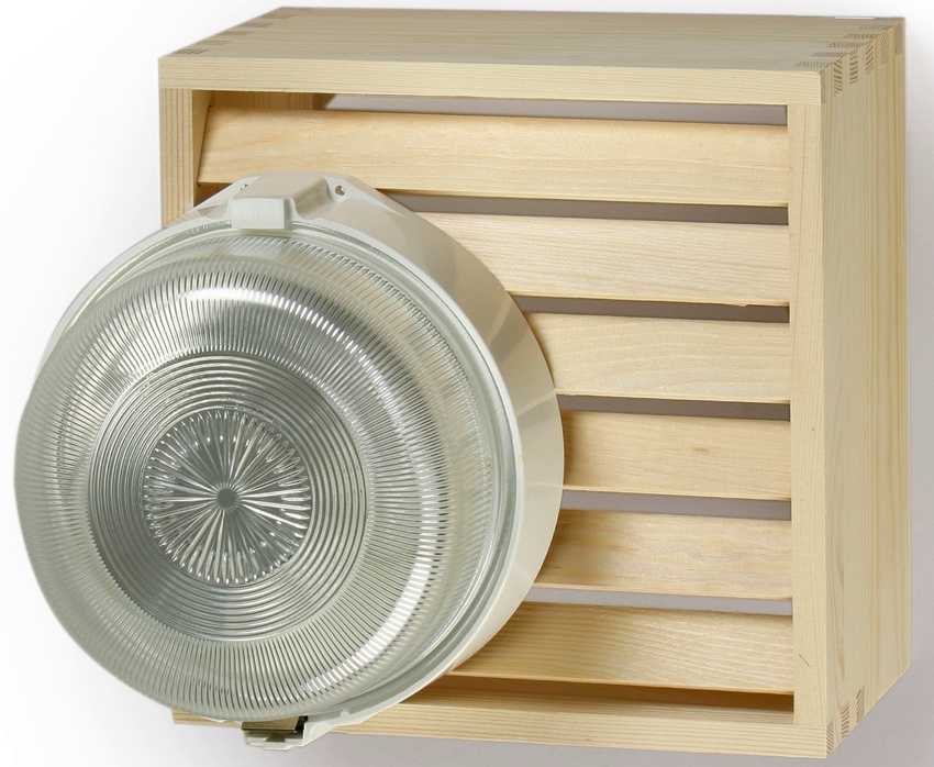 Несмотря на высокую степень защиты от возможных брызг, часто светильники в бане устанавливают за загородкой из дерева, предохраняющей их от возможного повреждения.