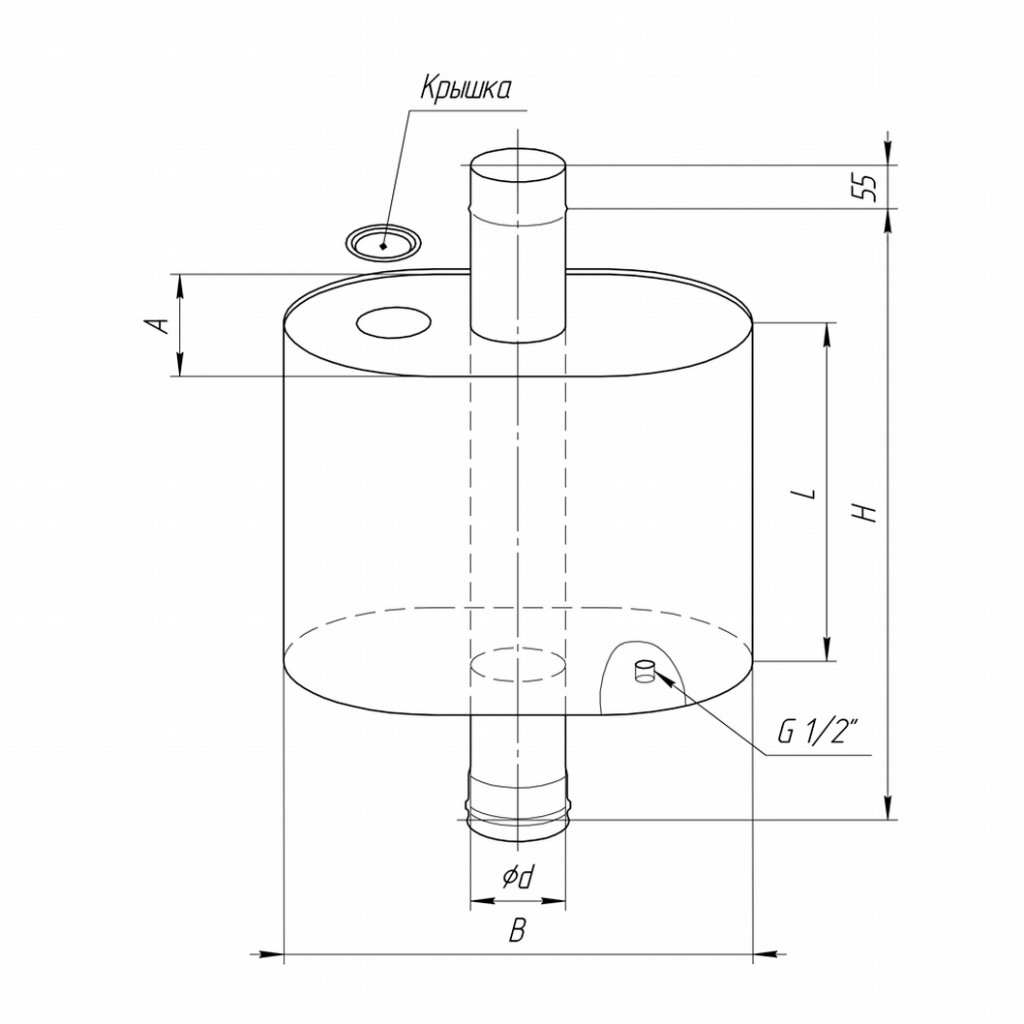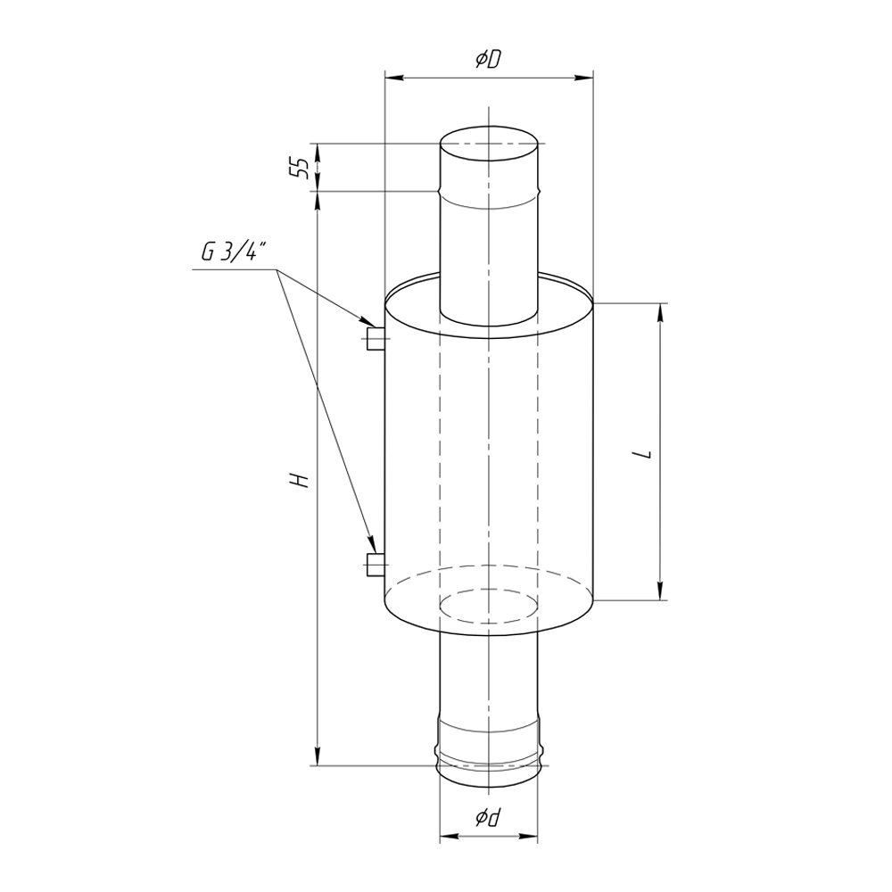 - Два небольших патрубка одного диаметра с диаметром дымохода; желательно использовать трубу дымохода – если дымоход сборный, то с одной стороны конструкции патрубок будет с раструбом, который необходим для монтажа теплообменника.