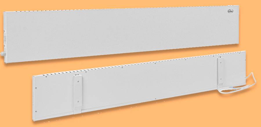 Помимо описанных выше электрических плинтусных обогревателей, похожих на обычные плинтусы, в продаже присутствуют приставные конвекторы. По своей конструкции они напоминают напольные конвекторы, только они невысокие, узкие и длинные. В зависимости от мощности, они могут обогревать довольно приличную площадь. Инфракрасное излучение здесь создается стенами, которые греются от восходящих потоков горячего воздуха.