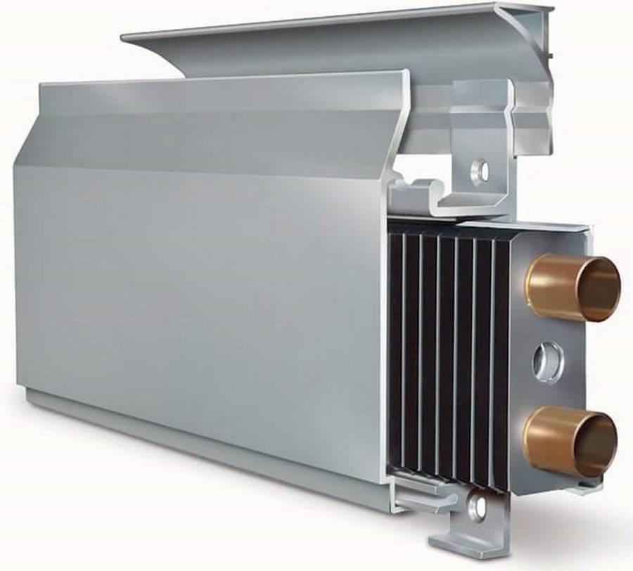 Строение коробов водяных плинтусов ничем не отличается от облицовки электрических модулей. Короба делают обычно из тонколистового эмалированного железа.