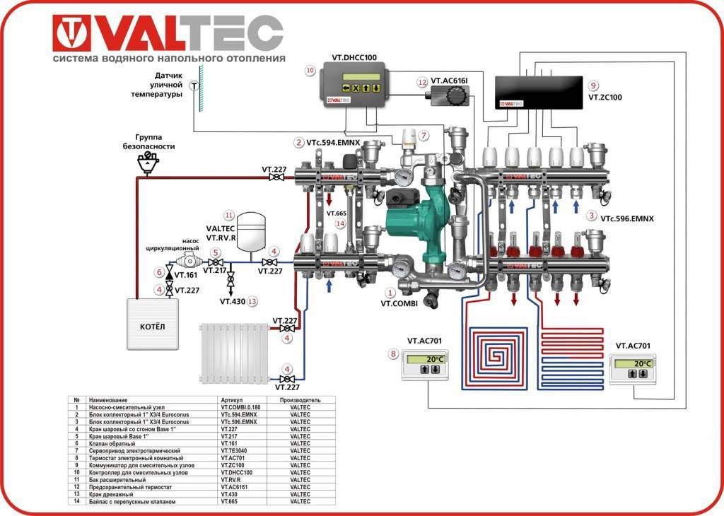Равномерное прогревание теплого пола Валтек обеспечивает коллектор