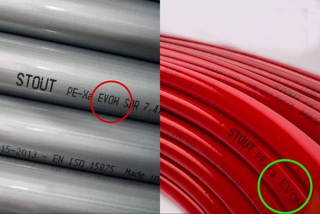 «Rehau RAUTITAN S» – цвет красный. Изделие двухслойное: сшитый полиэтилен РЕх-а и кислородный барьер. В качестве теплоносителя в жидкостных магистралях из красных труб используют как воду, так и другие теплоносители: антифриз, пропиленгликоль. В других модификациях «Rehau RAUTITAN» рекомендуют подавать воду.