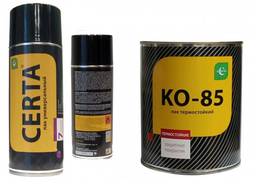 - Самый популярный это лак КО85, который часто применяют не только для бытовых работ, но и в промышленных целях для получения очень стойкого покрытия. Слой такого лака может выдерживать до +300 градусов, еще состав стойкий к температурным перепадам, и может выдержать до -30 градусов. Помимо этого, материал легко наносится краскопультом. Для регулирования консистенции можете разбавлять лак.