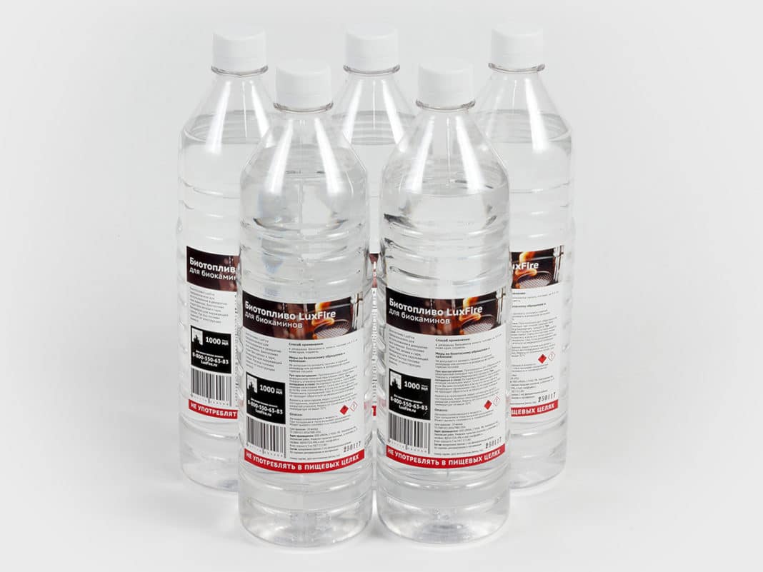 Для заправки биокаминов в основном используют биоэтанол. Для него характерна бесцветность и легкая воспламеняемость. В процессе изготовления горючего материала участвует денатурированный этанол, который получают на основе обычного спирта.
