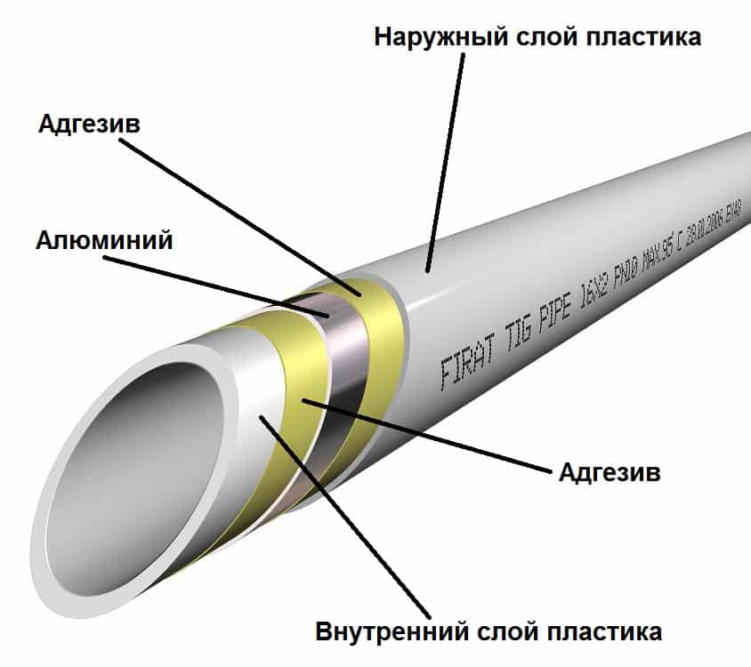 На сегодняшний день компании – изготовители в основном выпускают пятислойную металлопластиковую трубу, в которой три слоя являются основными, а два клеевыми, т.е. связующими.