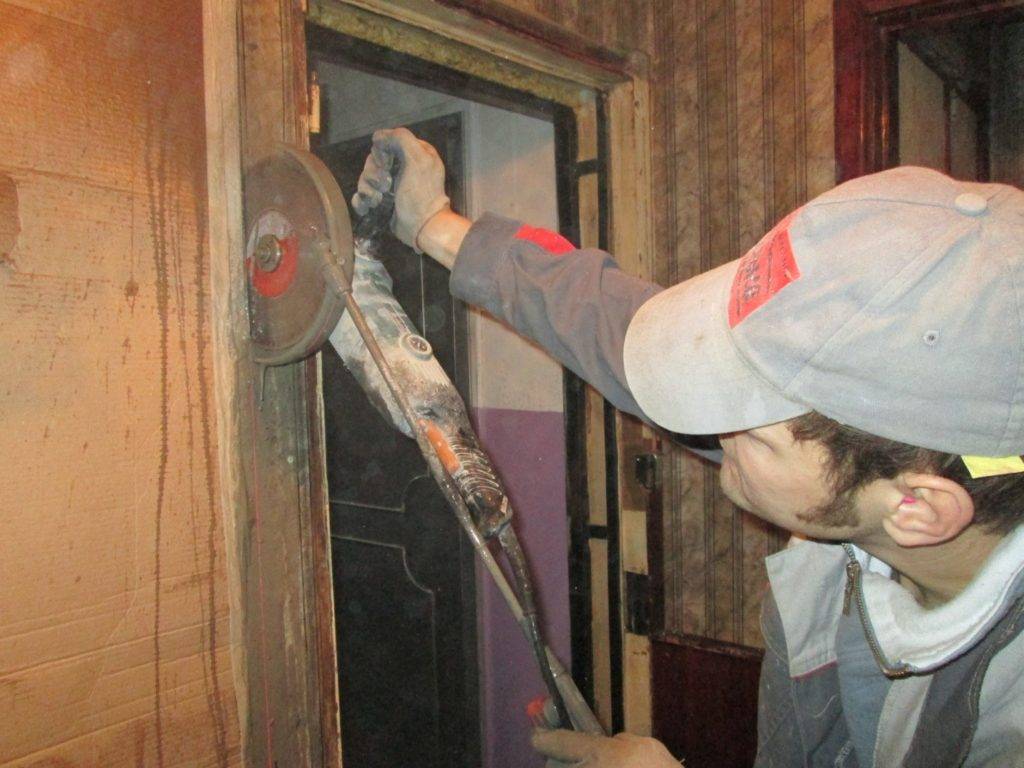 Если в процессе ремонта задумана замена двери на большую или меньшую, потребуется изменение величины проема и подготовка места установки металлического короба. Для расширения часть стены убирают при помощи соответствующего инструмента. В каменных строениях применяют перфоратор, а в деревянных — пилу.