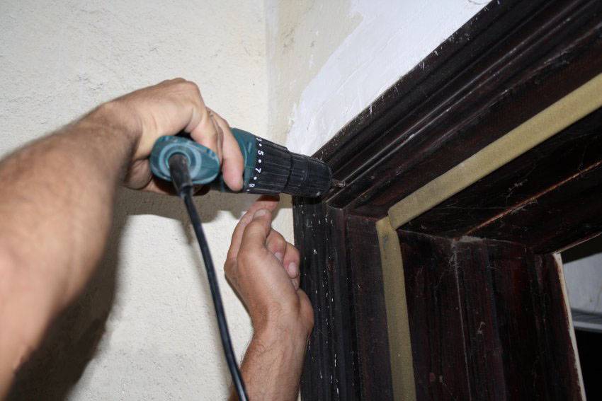 Окончательная фиксация дверного полотна проводится при помощи саморезов длиной до 15-ти сантиметров или дюбелей.