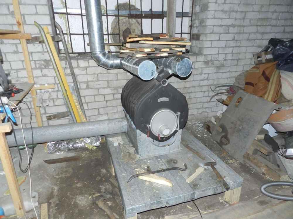 - ставим печь булерьян:20 см от пола для естественной конвекции воздуха, для этого монтируем подставку.