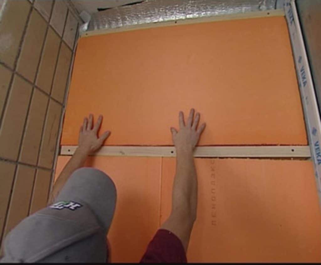 - Устройство плит происходит по всему периметру помещения, включая стены, поверхность потолка и пола. Если уложить материал только на стены, в таком случае затраты будут неэффективны – помещение останется холодным. Это обстоятельство играет большую роль при объединении балконной части с квартирой;
