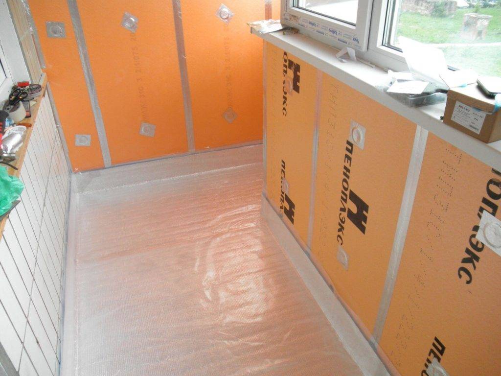После облицовки балкона пеноплексом, необходимо завершить утепление пола.