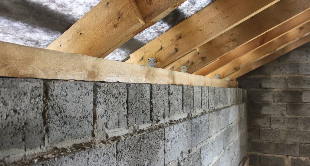 - Укладывая нижний ряд, необходимо позаботиться о монтаже пола, оставив пространство для балок.
