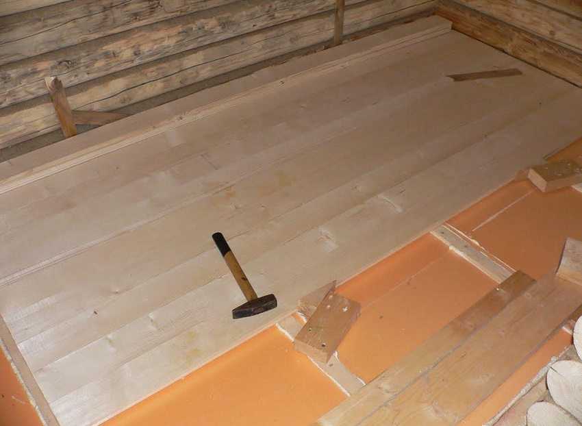 - на обрешетку прибивают черновой пол—дощатое покрытие, которое изготовлено из некондиционных досок. Вбивать доски нужно таким образом, чтобы гвозди не доставали до лаг;