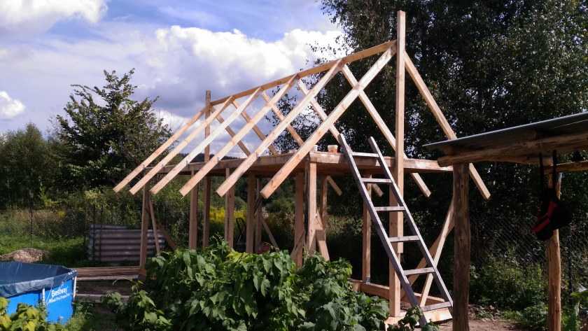 Обратите внимание, что на крайних стропилах сделаны выпилы под консольные балки для выноса крыши