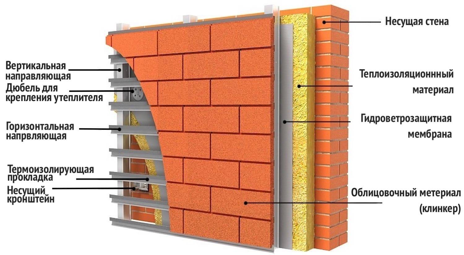 Этапы проведения работ при устройстве вентилируемого фасада