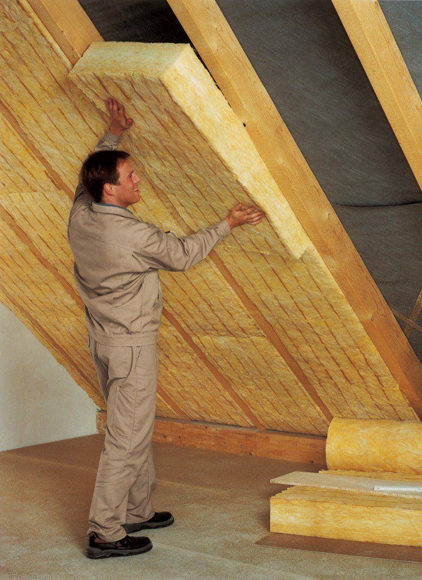 Базальтовая минвата отлично подходит по всем параметрам. Имея большую прочность, не впитывает влагу, пожаробезопасна и практически не проводит тепло. Так как она обладает эластичностью, то хорошо держится в месте установки, упираясь своими краями в стропила. Стекловата более прочная, и как звукоизолятор более эффективная