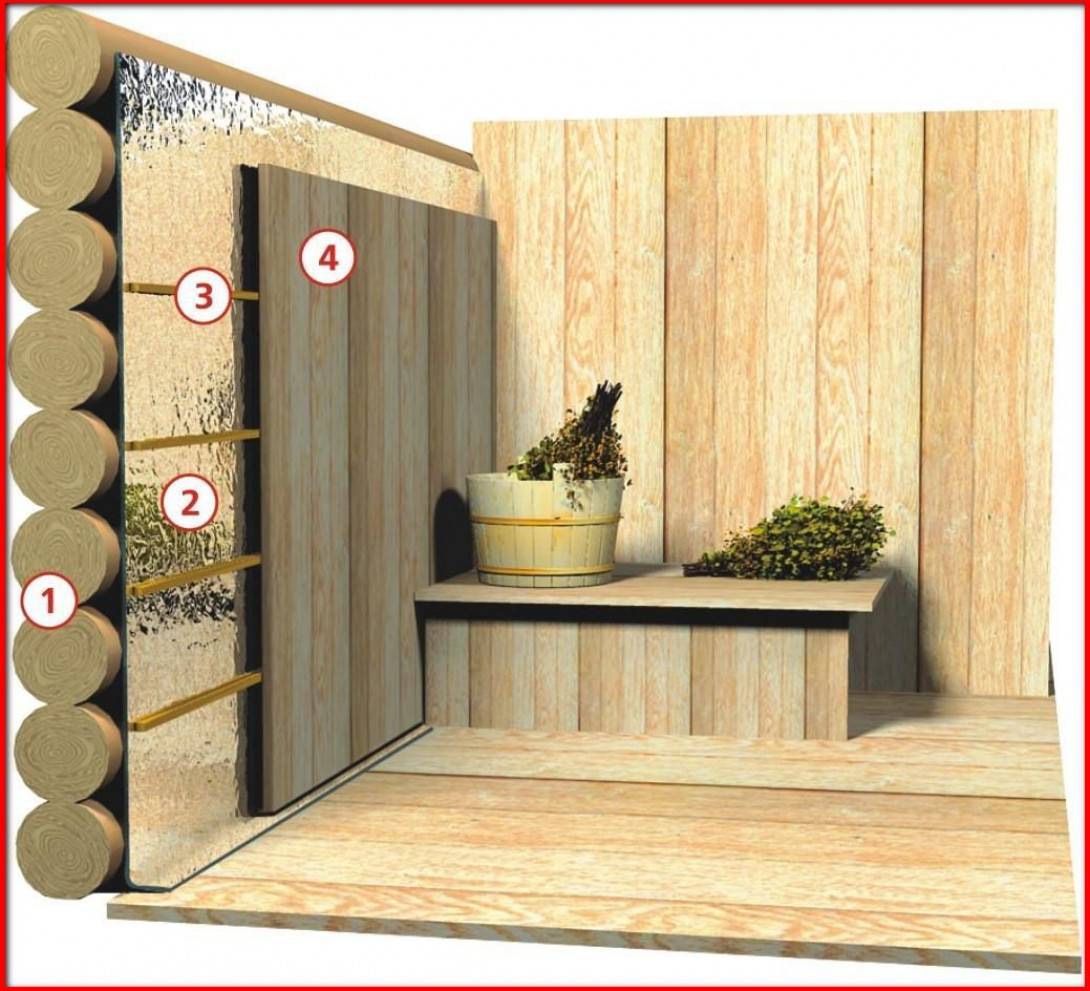 Для отделки стен рекомендуется использовать утеплитель с фольгой. Изначально для него сооружается каркас из дерева, который обрабатывается мастикой, чтобы древесина не гнила. Перед укладкой термоизолятора проводятся все электрокоммуникаци. Также устанавливается вся сантехника. Делается вентиляция.