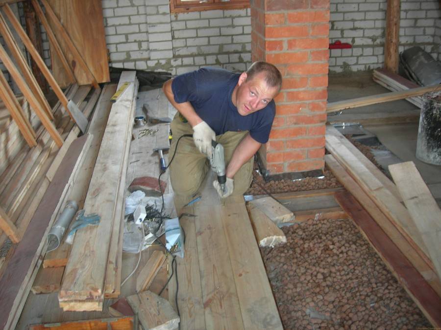 В этом случае технология утепления керамзитом состоит в засыпке утеплителя между лагами. Сверху монтируется черновой пол из досок или фанерных листов.
