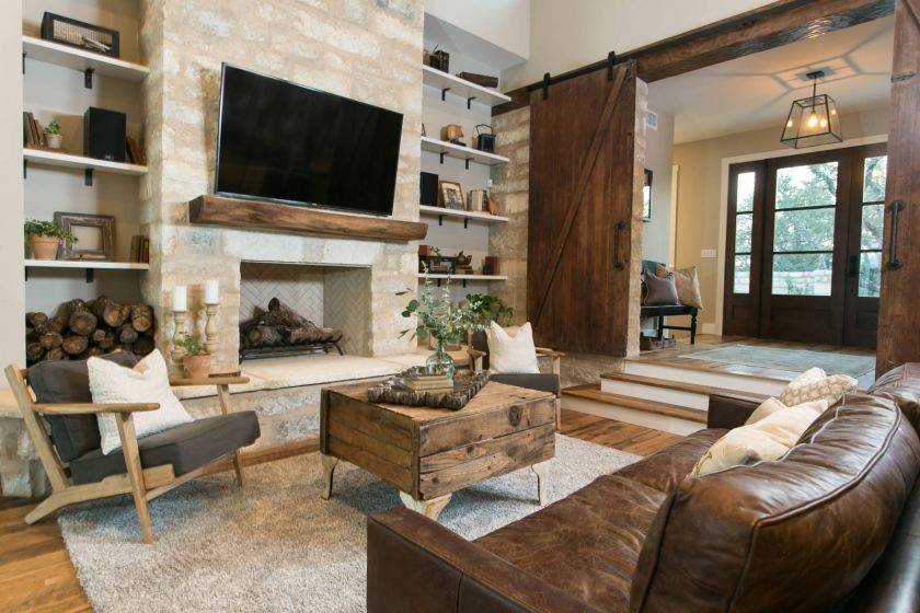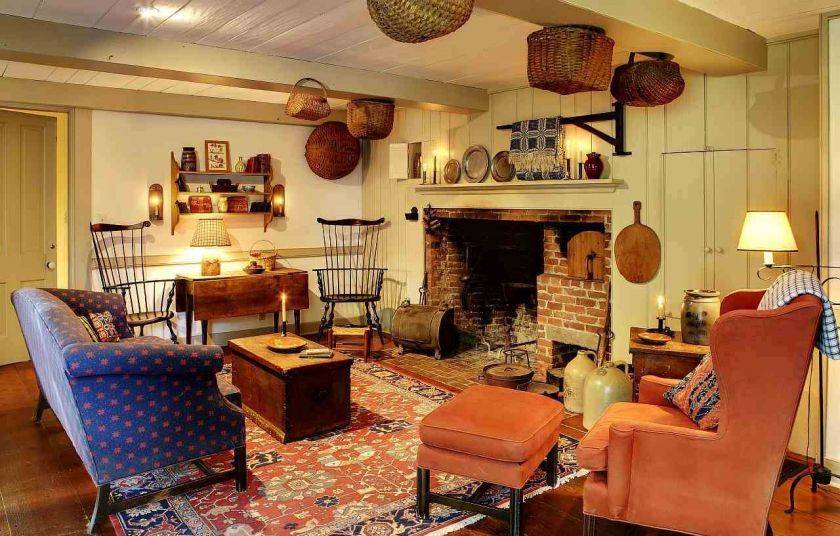 В кантри камины обязательны, но он резко отличается от всех предыдущих. Портал имеет характерный деревянный дизайн.