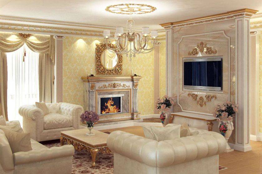 Торжественный интерьер комнаты в классическом стилеИсточник plasters.by