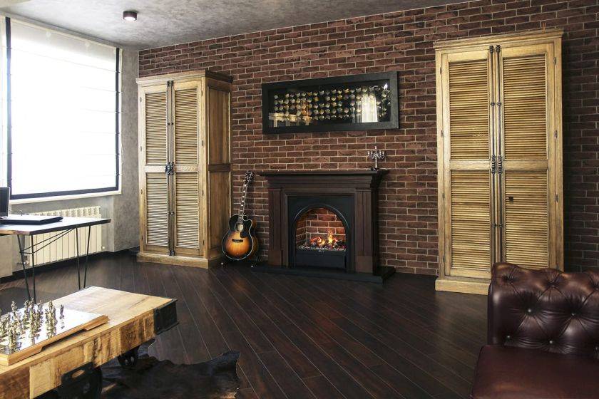 3. Лофт. Грубое обрамление кирпичом – хороший вариант. При этом камень может быть декоративным.