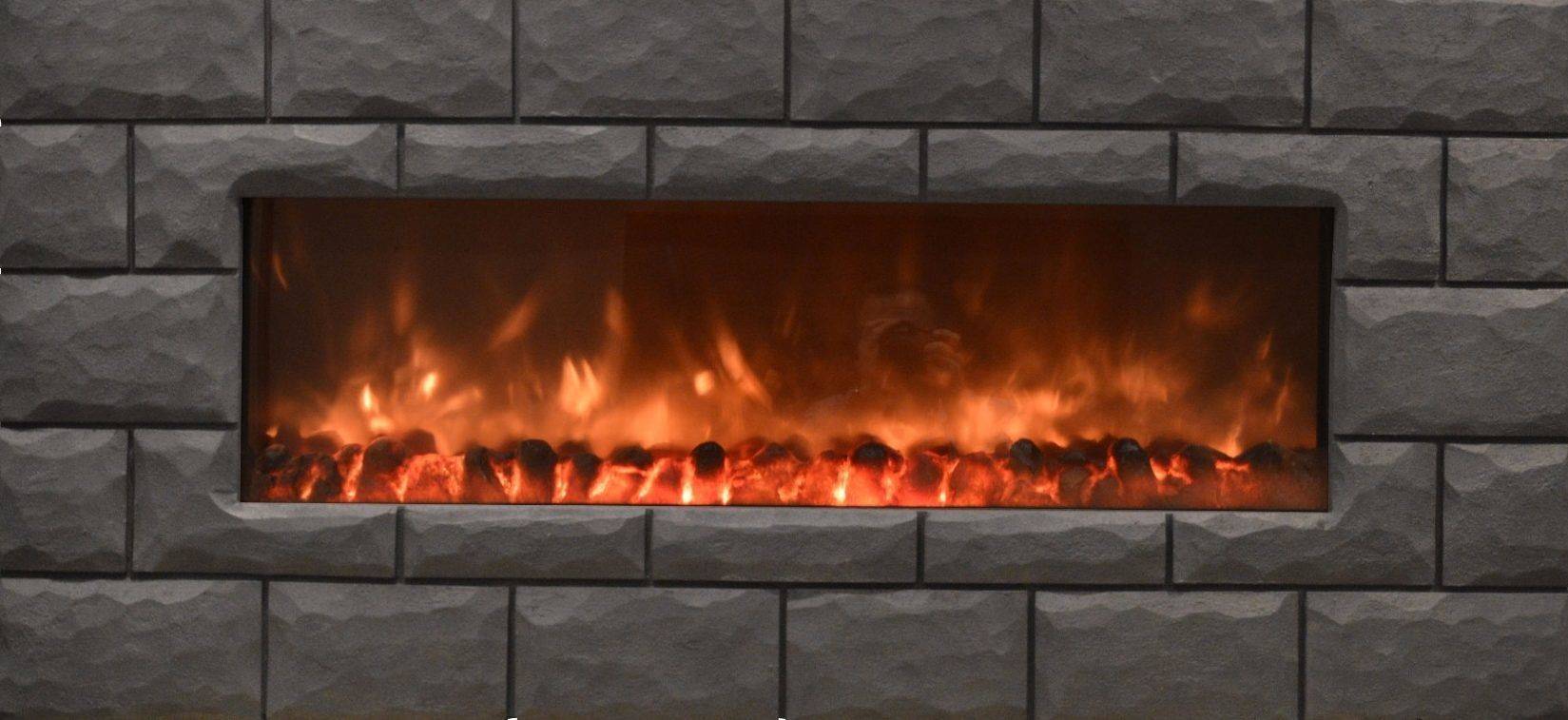 Они представляют собой электрический очаг, заключенный в корпус, которые встраивают в стену в любом удобном месте. В зависимости от модели они могут быть классической формы или широкоформатные, декоративные или комбинированные, сочетающие функцию обогрева с визуализацией пламени.