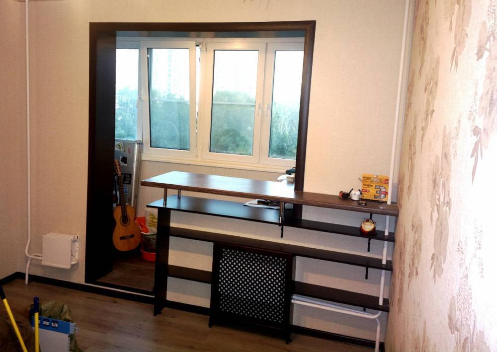 - Использовать подоконник. Его можно вытянуть вперед, чтобы сделать из него стол или подставку для большого цветника. В игровой зоне на него можно расставить сборные игрушки – лего и подобные.