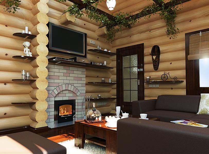 Разнообразить древесные элементы можно камнем, кирпичом, плиткой или пластиком. Модернистские ноты в более редкой для наших мест стилистике, как восточная, английская, дополнит соответствующая мебель, зеркала, картины, люстры, ткани и прочие аксессуарные тонкости.