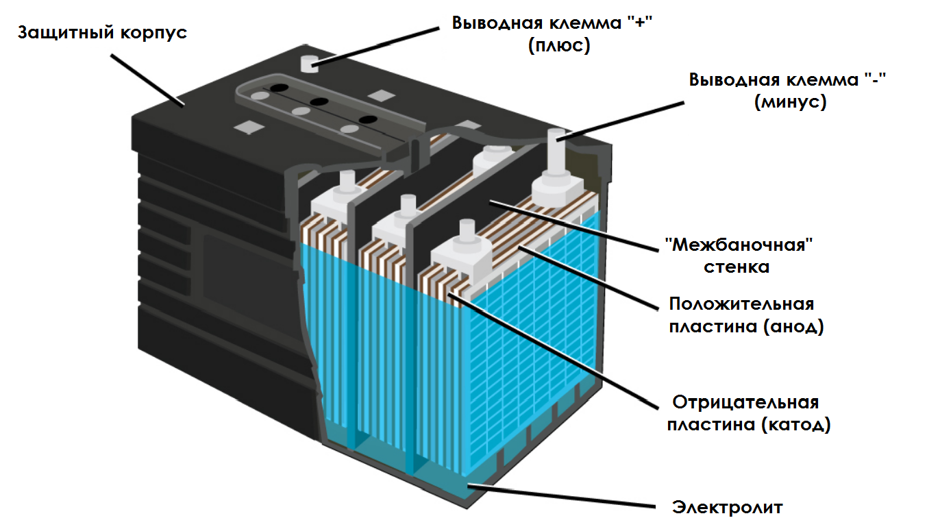 Данные аккумуляторы называются свинцово-кислотными, и в названии заключается описание принципа действия этих устройств.
