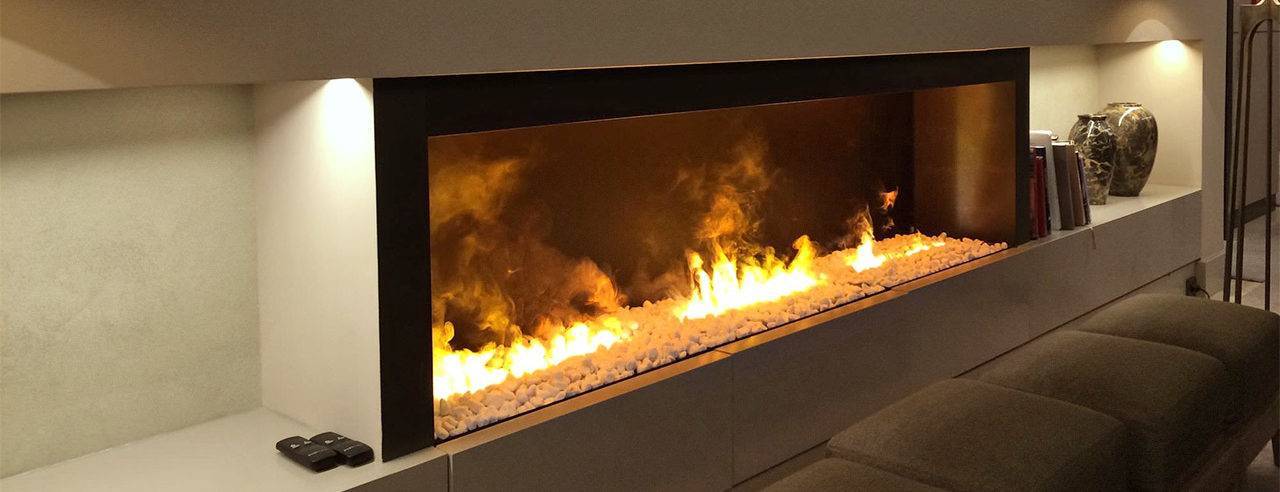 Они представляют собой электрический очаг, заключенный в корпус, которые встраивают в стену в любом удобном месте. В зависимости от модели они могут быть классической формы или широкоформатные, декоративные или комбинированные, сочетающие функцию обогрева с визуализацией пламени.