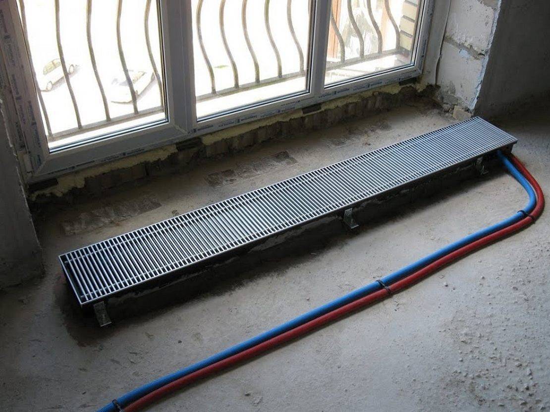Для установки данных радиаторов в полу под окном или в другой зоне комнаты делают канал. Его размеры зависят от габаритов корпуса батареи.