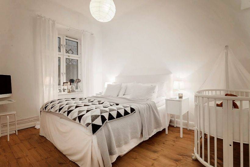 У многих не всегда есть возможность обустроить отдельную комнату для новорожденного. Иногда родители также боятся, что ребенок будет слишком далеко от них. В любой ситуации ничто не мешает сделать зону для новорожденного в спальне родителей. Есть ли способ, чтобы этот интерьер был последовательном и эстетичным? Конечно!