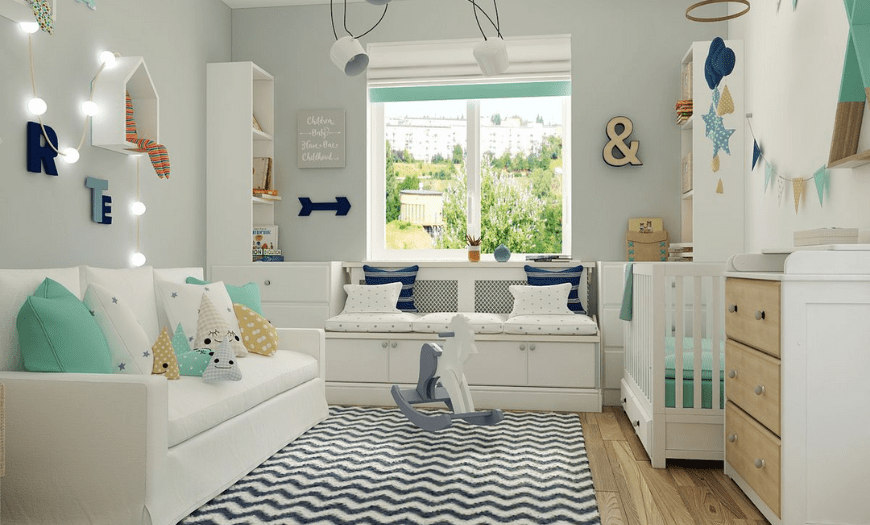 - Выбирая решения, которые позволят вам использовать доступное пространство (например, детская кроватка или комод с пеленальным столом).