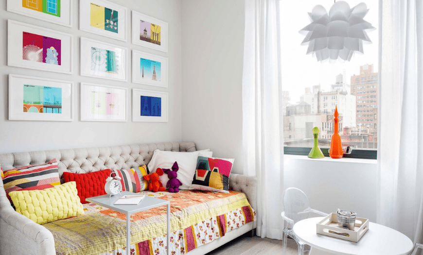 Игрушки ребенка могут «оживить» любой современный интерьер. Однако это не означает, что о декоративном оформлении можно не задумываться. Существует огромное количество предметов, с которыми комната 100% выиграет. Например, текстиль, интересные шторки, пледы. Можно выбрать цвета, использовать трендовые принты.