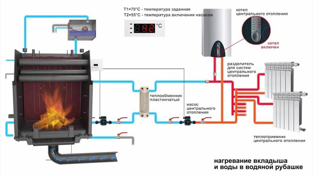 Есть универсальный вариант устройства системы отопления. Он заключается в том, что в одну систему можно врезать камин с контуром и котел. Котел будет одним полноценным источником, а камин – второстепенным.