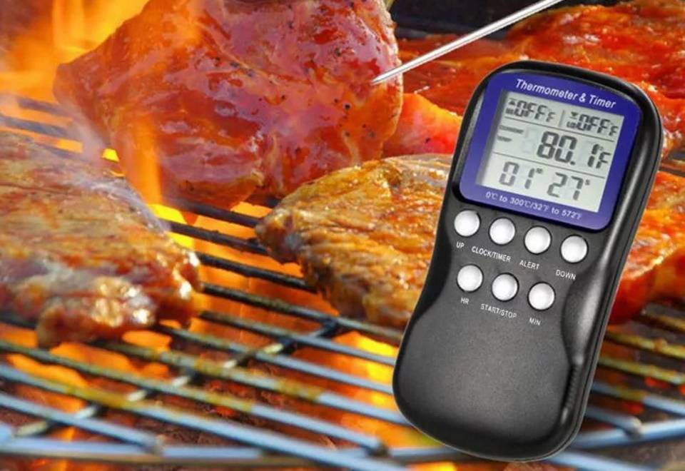 5. Температурный датчик в виде термометра с чувствительным элементом, размещённым внутри чаши – для контроля процесса готовки с уменьшением риска получения недожаренного мяса или сырых овощей.