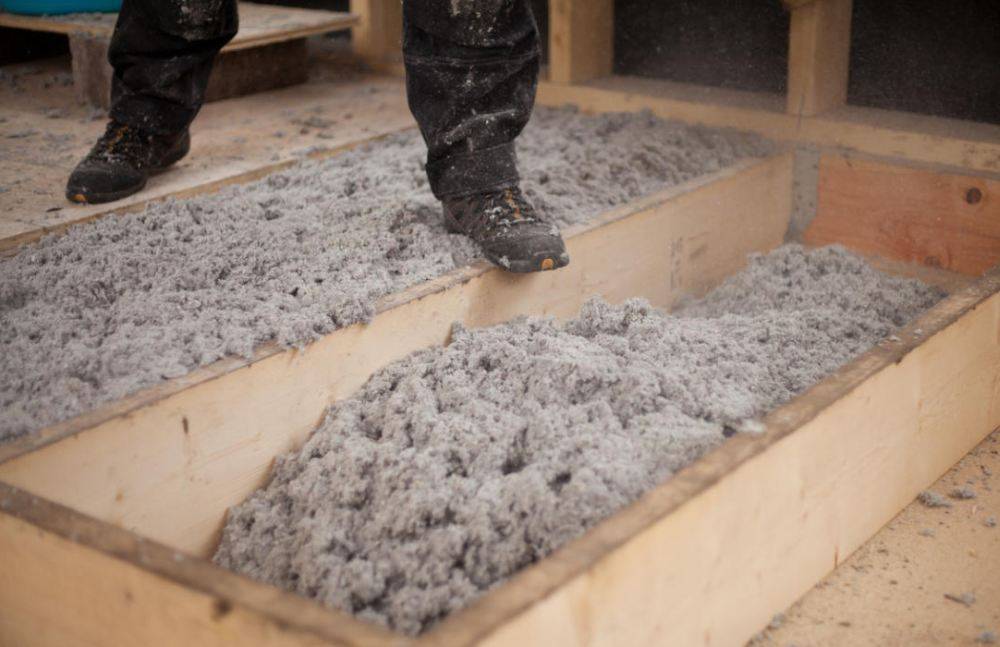 Чтобы провести утепление эковатой пола применяют сухую целлюлозу.