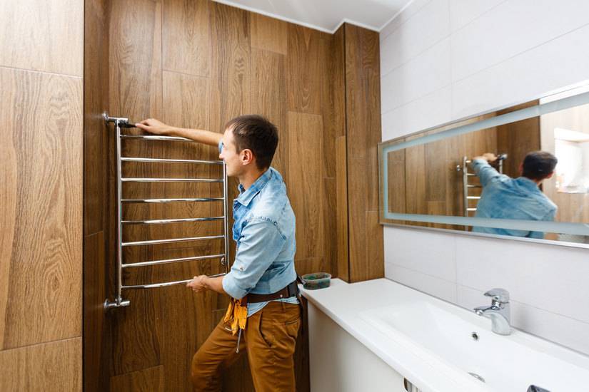 Чаще всего планировка ванной комнаты не предполагает наличие розеток. Тогда для установки электрического полотенцесушителя необходимо: