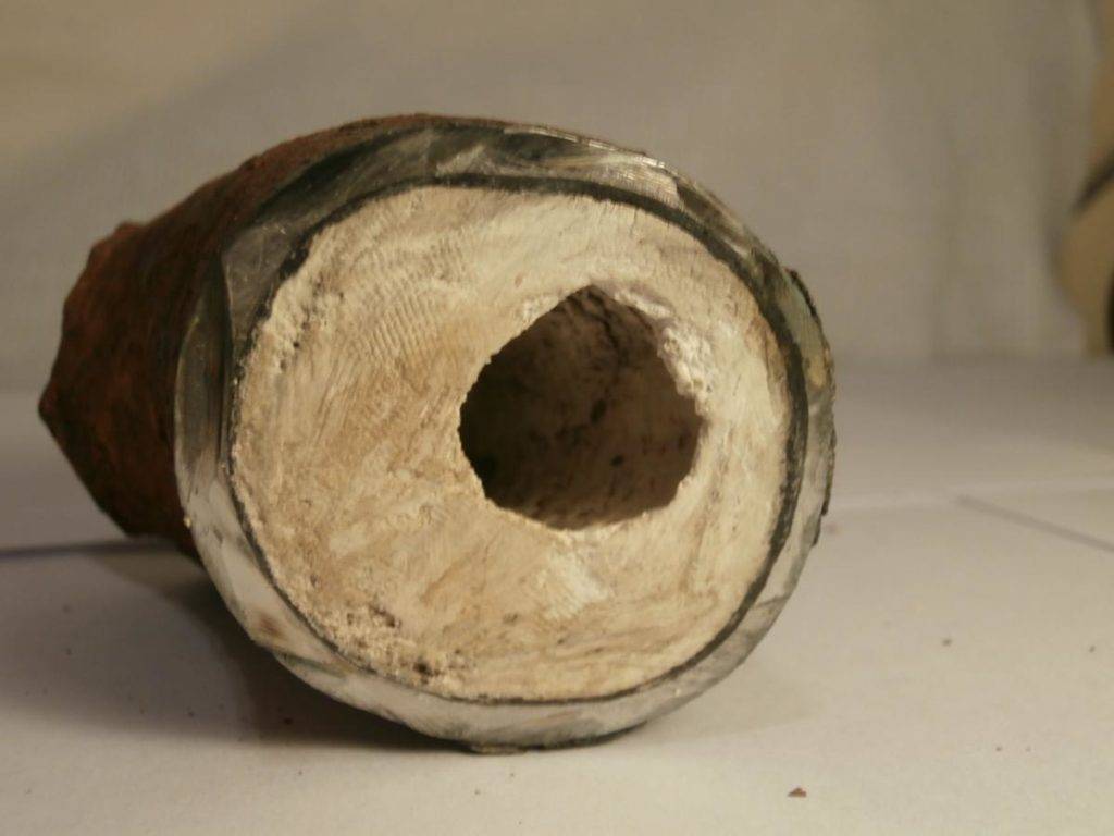 - Зарастание внутренних стенок трубы известковыми отложениями или налипание на них ила. Последний оседает на стенках при длительном простое гидротехнического сооружения.